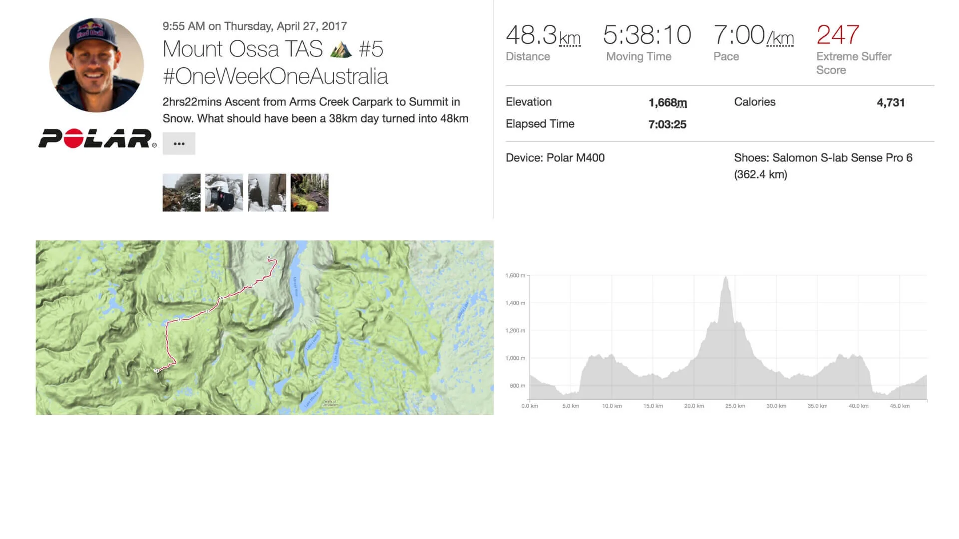 Courtney Atkinson's Polar M400 on Mount Ossa Tasmania